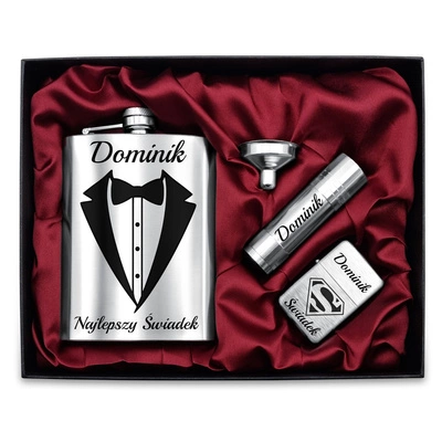 Zestaw Premium Piersiówka Scyzoryk Zapalniczka z GRAWEREM Black 240ml