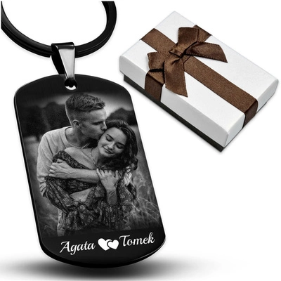 Nieśmiertelnik z GRAWEREM Zdjęcia Męski Stal 316L na Prezent Srebrny