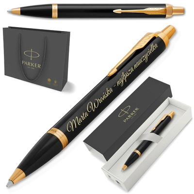 Długopis Parker IM Czarny GT Pozłacany z GRAWEREM Prezent dla Nauczyciela