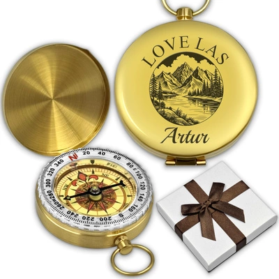 Mosiężny Kompas Złoty GRAWER Prezent na Urodziny Rocznicę Emeryturę