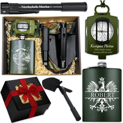 Zestaw Prezentowy Kompas + Saperka + Piersiówka Wojskowa z GRAWEREM Gratis