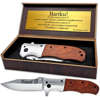 Nóż Myśliwski Huntsman w Drewnianym Pudełko Prezent dla Taty Żołnierza