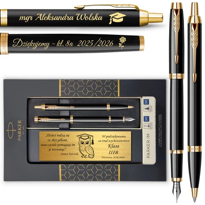Pióro Wieczne i Długopis Parker IM Czarny GT z GRAWEREM Pozłacane Okienko