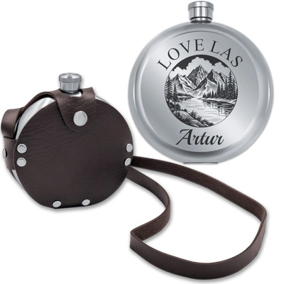 Piersiówka z GRAWEREM Okrągła 240ml GRAWER + Skórzane ETUI - Prezent
