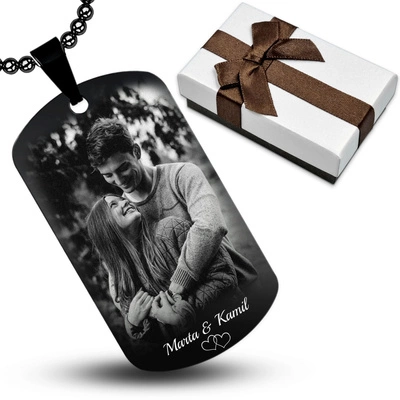 Nieśmiertelnik z GRAWEREM Zdjęcia Męski Stal 316L na Prezent Czarny