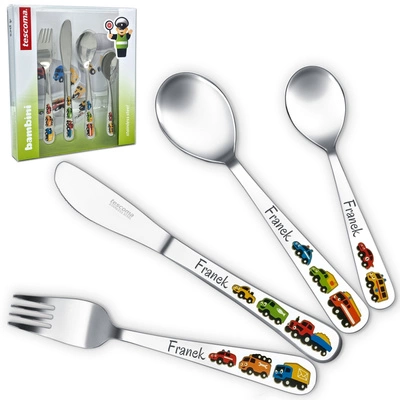 Sztućce dla Dzieci Tescoma Bambini AUTKA Grawer Prezent na Chrzest Roczek