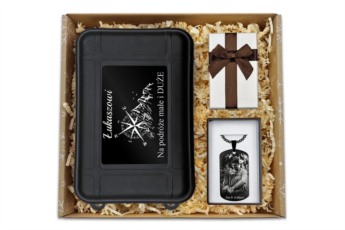 Całość tworzy wyjątkowy prezent, który zachwyci każdego miłośnika survivalu i stylowych, personalizowanych upominków.