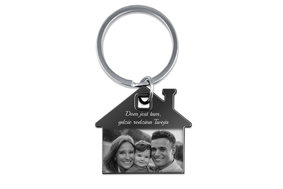 Brelok do Kluczy Domek z GRAWEREM Zdjęcia Stalowy na Prezent Czarny