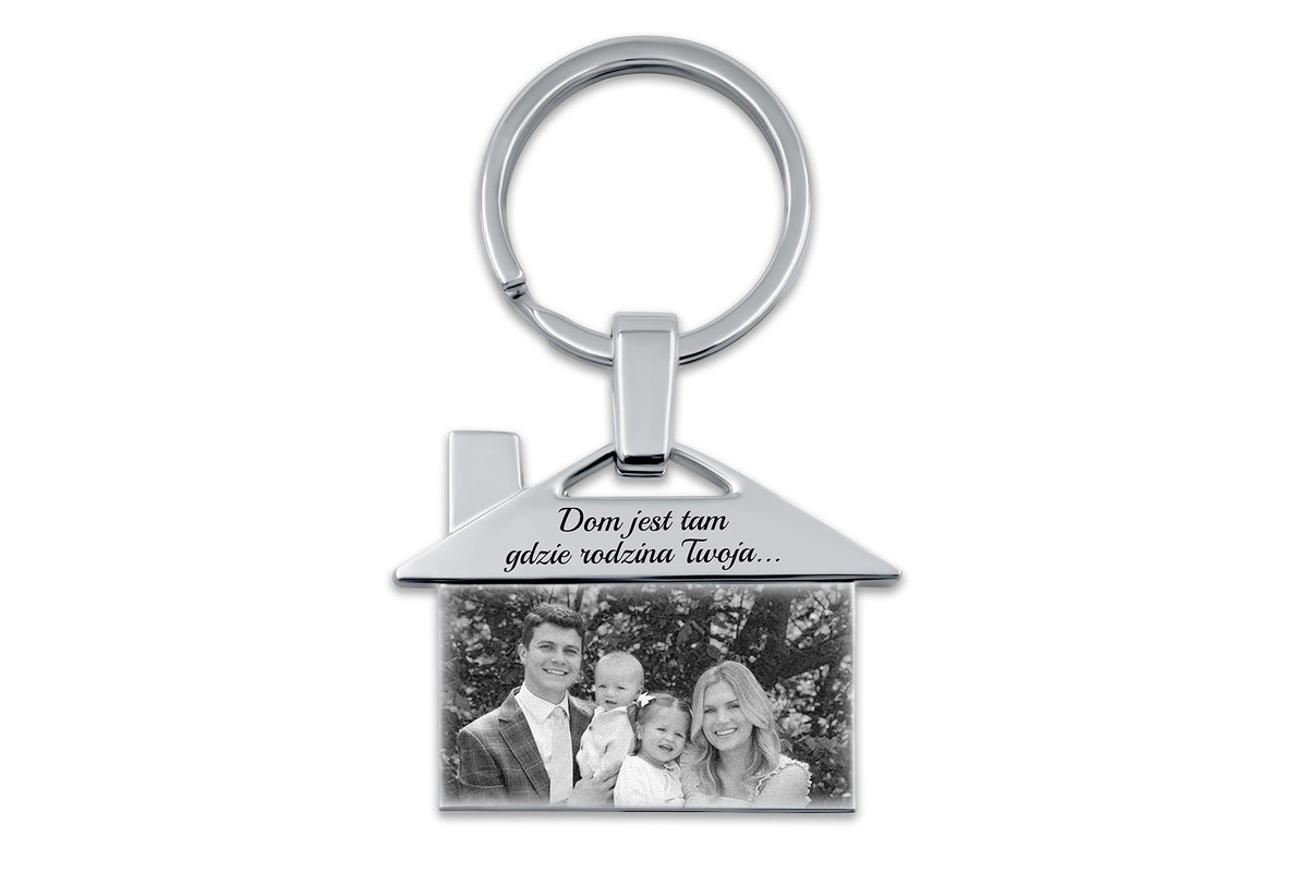 • Elegancki brelok w kształcie domku, wykonany ze stali szlachetnej. Personalizowany grawer zdjęcia lub tekstu to doskonały pomysł na niezapomniany prezent. Trwały i odporny na uszkodzenia.