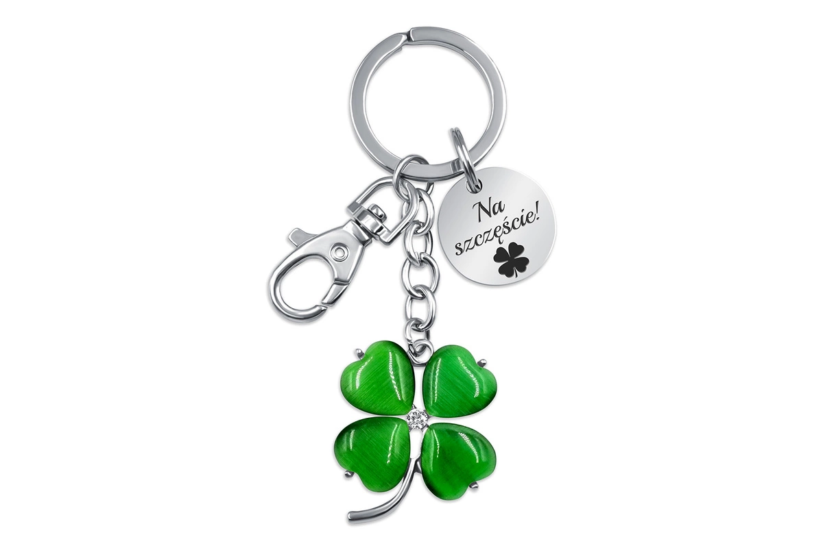 Brelok do Kluczy Koniczynka z Kryształkiem Grawer GRATIS na Prezent