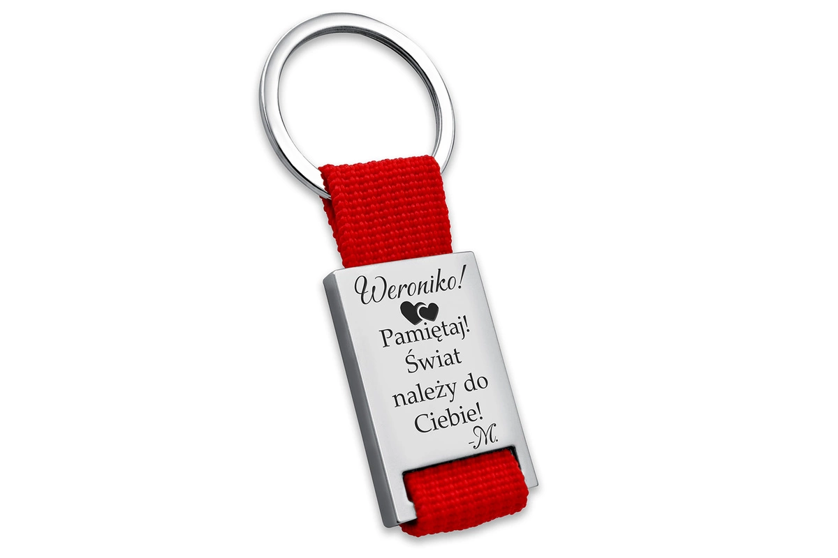 - Wyjątkowy brelok w czerwonym kolorze, idealny na Dzień Ojca czy Dzień Chłopaka. Solidny metal i plecionka, grawer gratis.