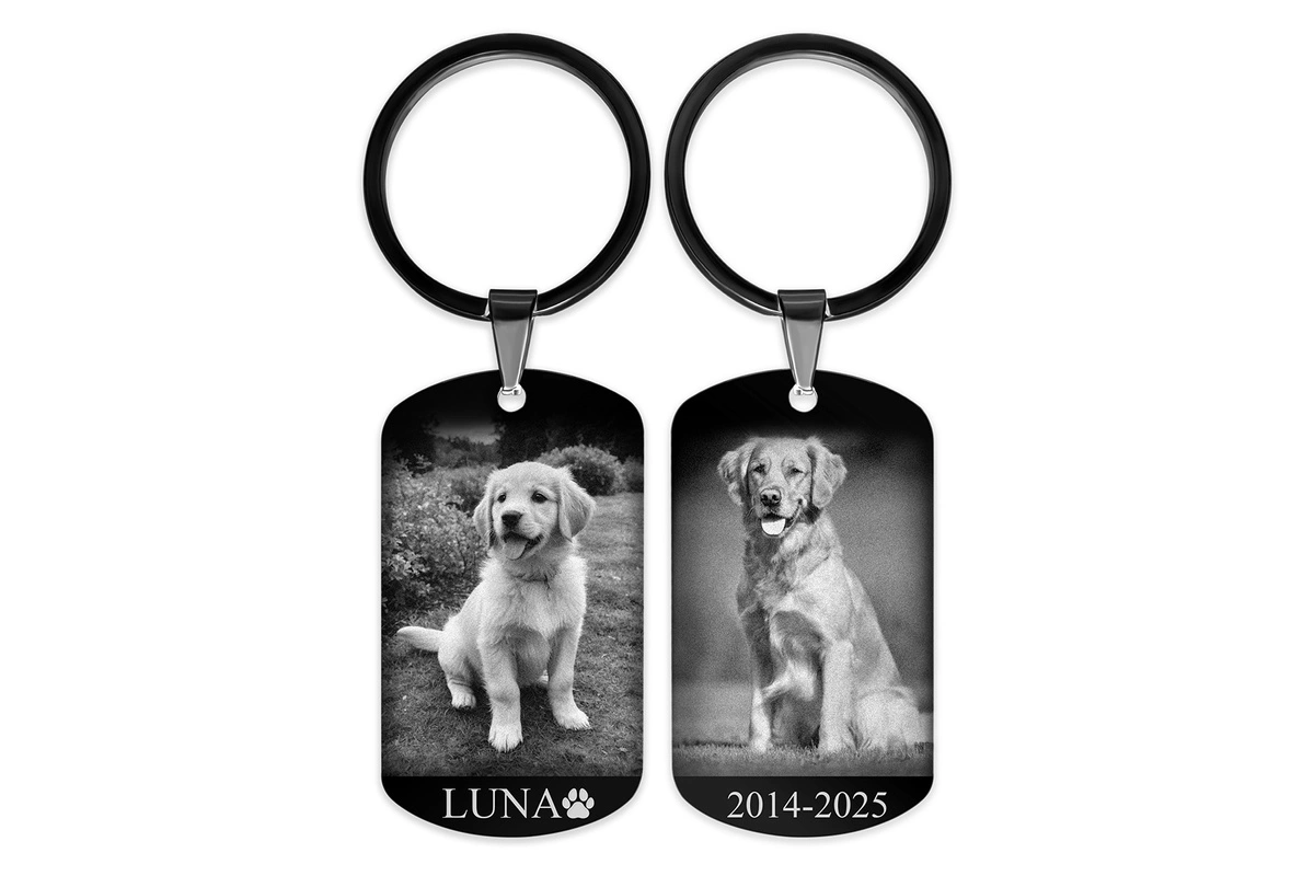Brelok do Kluczy Stalowy z GRAWEREM Zdjęcia Psa PUPILA na Prezent Czarny
