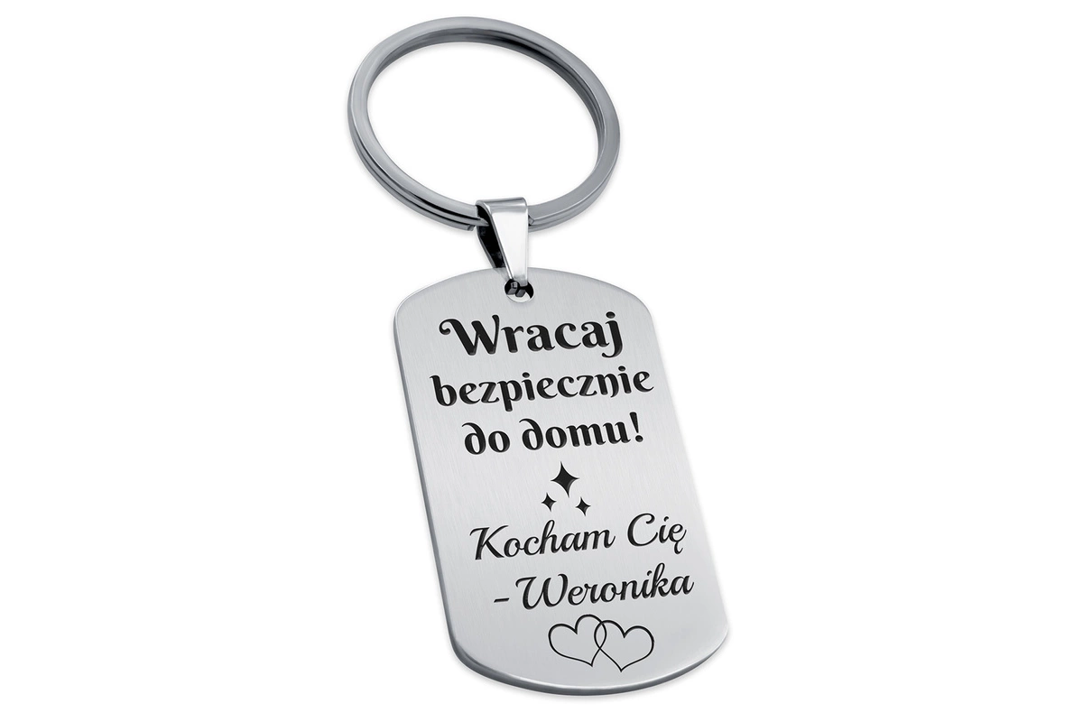 Brelok do Kluczy z GRAWEREM Srebrny Stalowy Prosty na Prezent