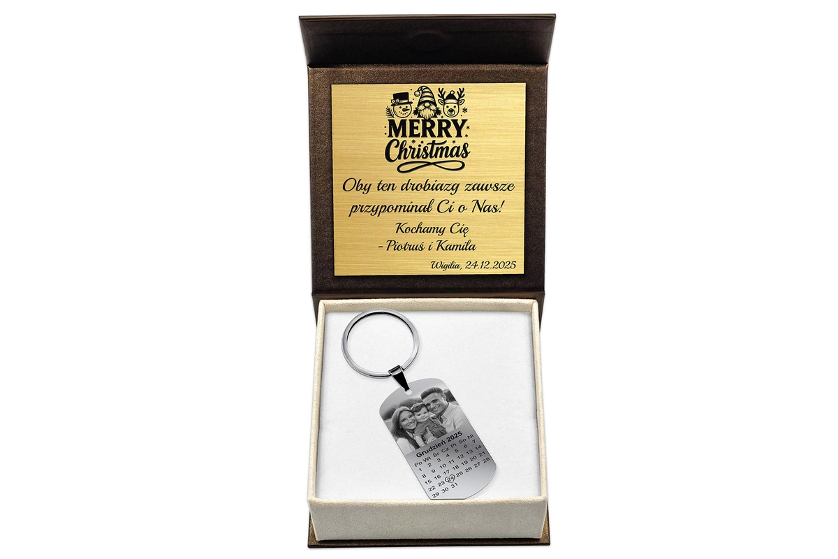 Brelok do Kluczy z GRAWEREM Zdjęcia Stalowy Srebrny Pudełko Premium