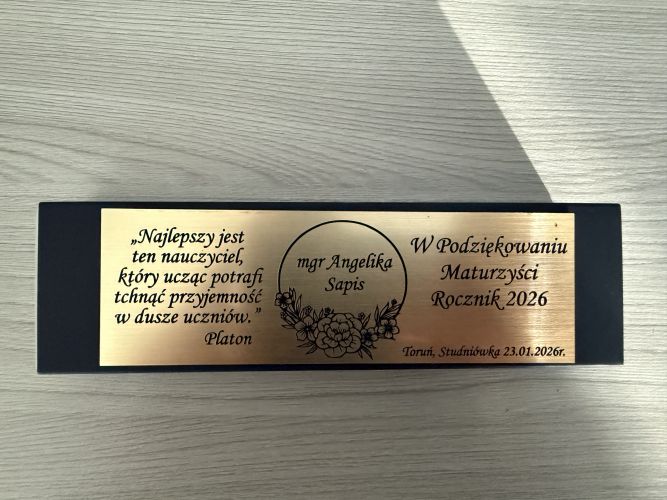 - 5/5Opinia potwierdzona zakupemZ całego serca polecam firmę Prezentis! Grawer na tabliczce oraz na długopisach wykonany perfekcyjnie – pełen profesjonalizm i dbałość o każdy detal. Realizacja wręcz ekspresowa: 19 długopisów wykonanych w jeden dzień, do tego błyskawiczna wysyłka. Ogromnym plusem jest także świetny kontakt, pełne zrozumienie potrzeb klienta i bardzo fachowe podejście. Widać, że pracują tam ludzie z pasją i doświadczeniem. Zdecydowanie polecam – na pewno jeszcze skorzystam z ich usług!2026-01-04