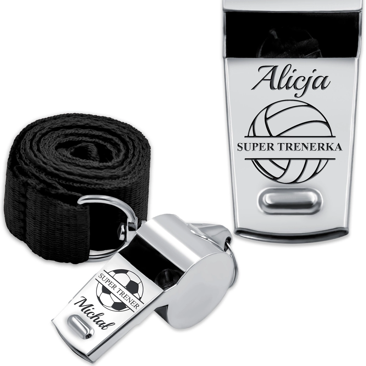 - Metalowy gwizdek o głośnym, wyraźnym dźwięku z trwałym grawerem. Idealny dla trenera lub nauczyciela WF. Smycz GRATIS. Zapakowany w eleganckie pudełko, doskonały prezent na każdą okazję.