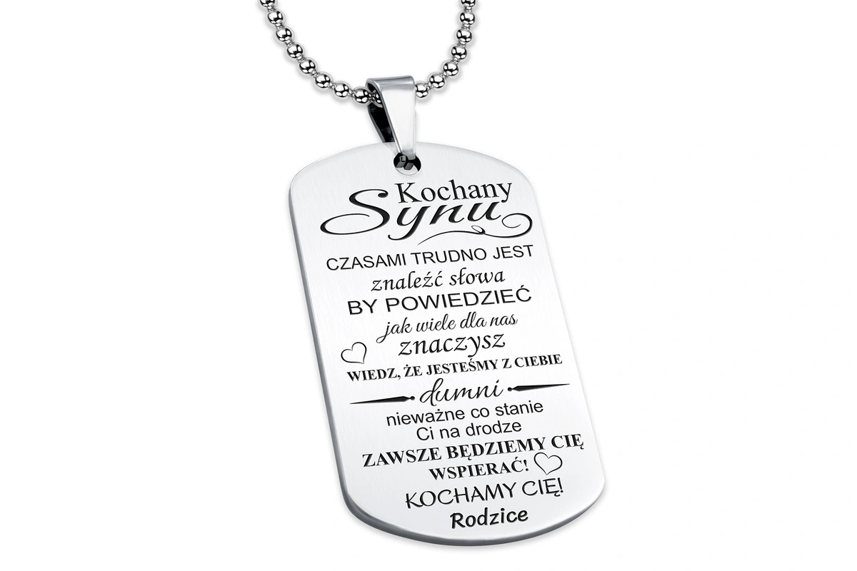 Nieśmiertelnik dla Syna z własnym GRAWEREM Prezent od Mamy Taty Rodziców S