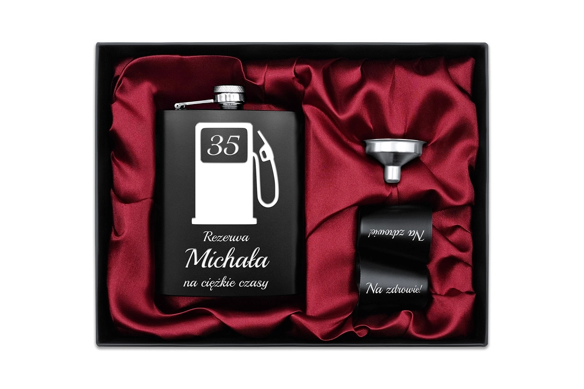Piersiówka w zestawie z dwoma kieliszkami i lejkiem wykonana z wysokiej jakości stali szlachetnej. Doskonale łączy zamysł przedmiotu o wyjątkowym designie i wysokiej funkcjonalności. Świetnie nada się na Wieczór Kawalerski, Biwaki czy wspólny połów ryb. Unikatowy grawerunek odporny jest na zarysowania, przetarcia oraz rdzewienie tworząc ponadczasową pamiątkę.
