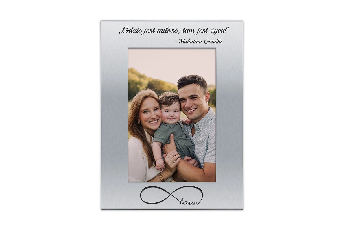Ramka na zdjęcia wykonana z wysokiej jakości aluminium. Umożliwia umieszczenie zdjęcia w układzie pionowym jak i poziomym. Dzięki unikatowemu grawerunkowi będzie doskonałą pamiątką uwieczniając najwspanialsze wspólnie spędzone chwile.