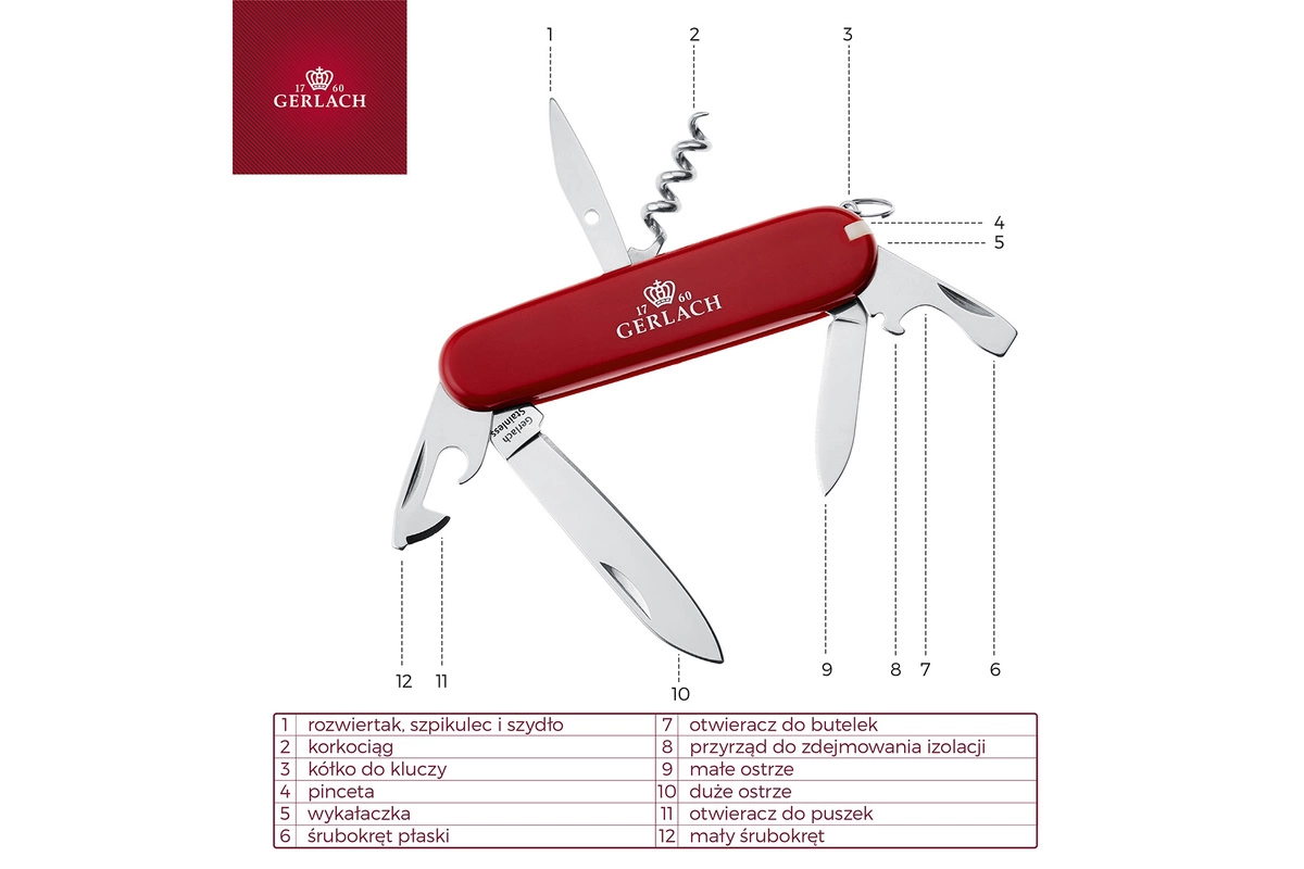 Scyzoryk Wielofunkcyjny Gerlach 12 funkcji z Grawerem Prezent Świąteczny