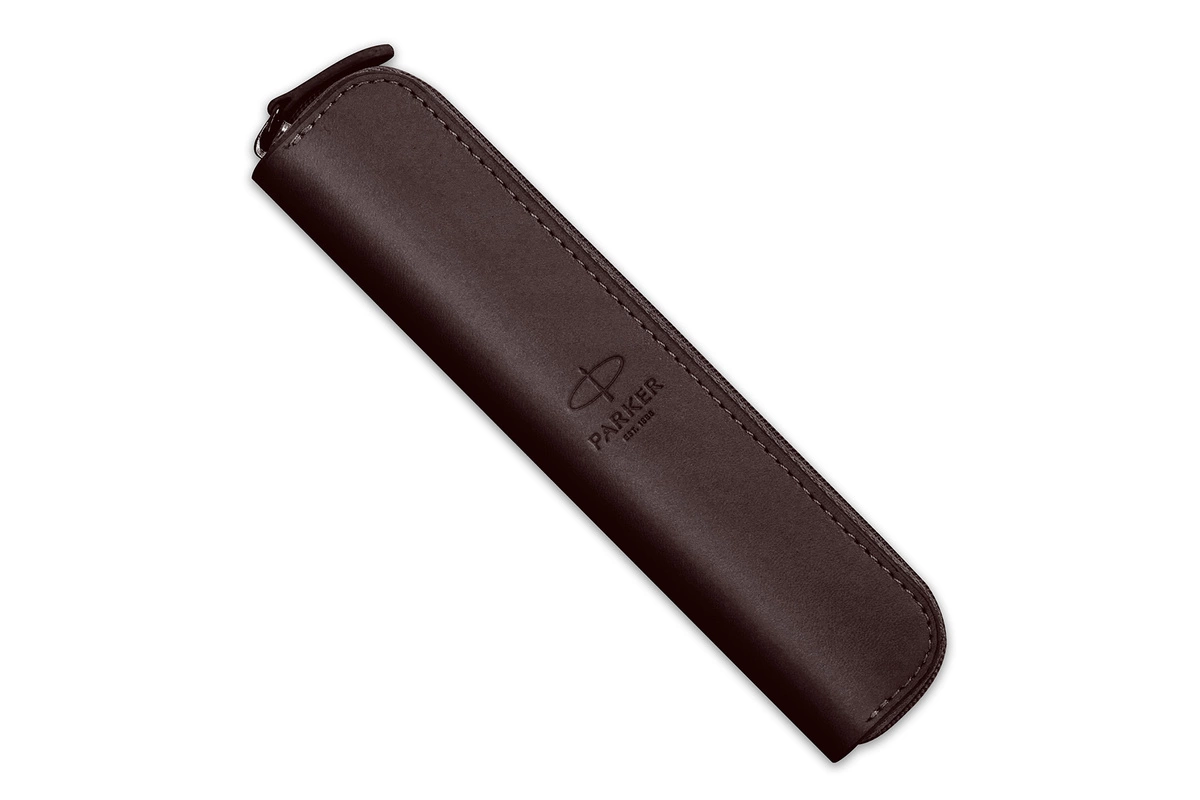 - Eleganckie etui marki Parker w pięknym ciemnobrązowym kolorze, które pomieści dwa artykuły piśmiennicze. Doskonały dodatek.
