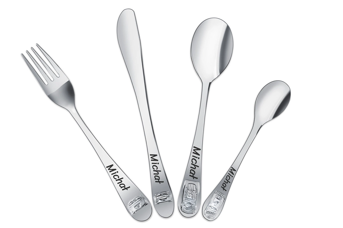 Sztućce dla dzieci Disney Cars wykonane z wysokiej jakości stali szlachetnej. Charakteryzują się eleganckim designem połączonym z wysoką funkcjonalnością. Zapewniają wysoki komfort użytkowania oraz bezpieczeństwo. Doskonale nadadzą się jako prezent z okazji Chrztu Świętego lub Urodzin Dziecka.