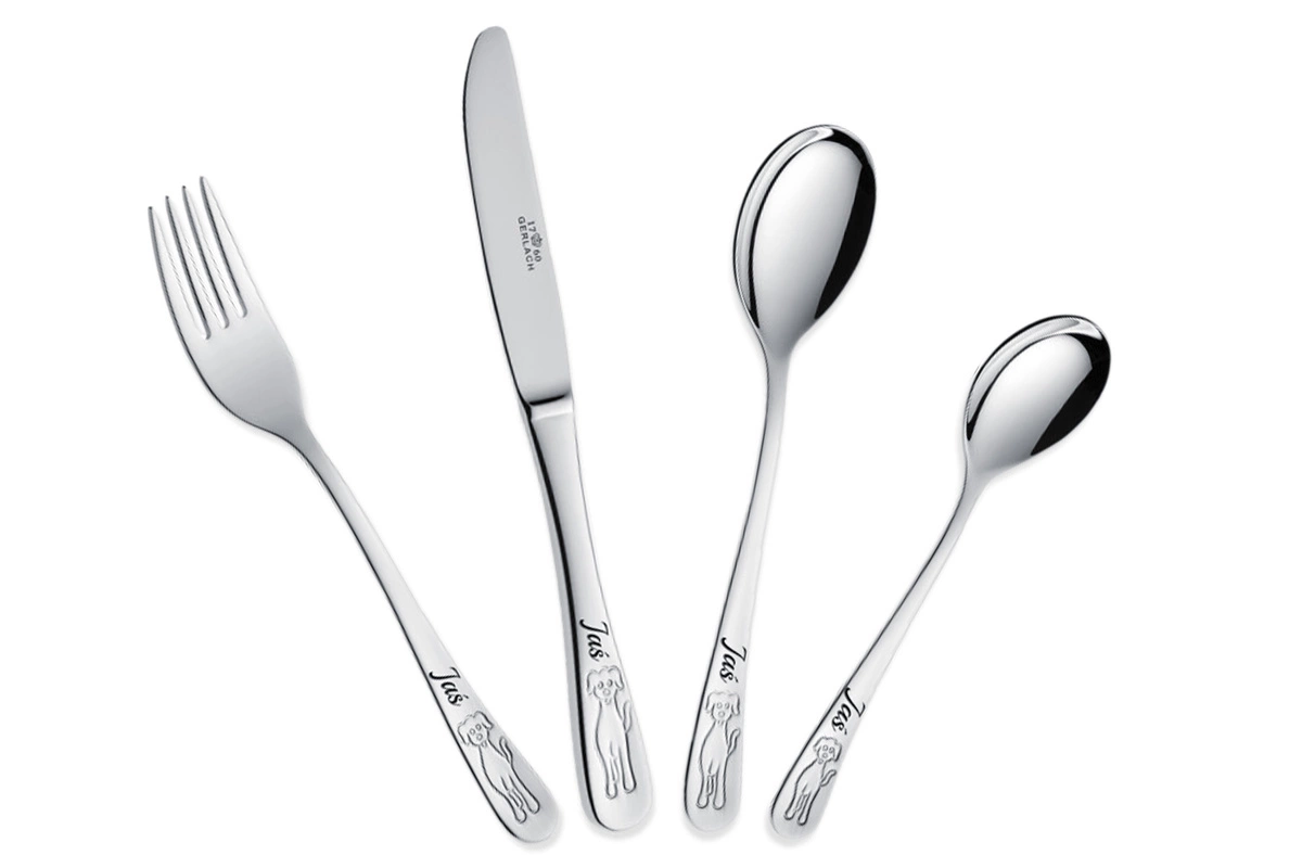 Sztućce dla Dzieci Gerlach Bon Ton Pieski Grawer Prezent na Chrzest Roczek