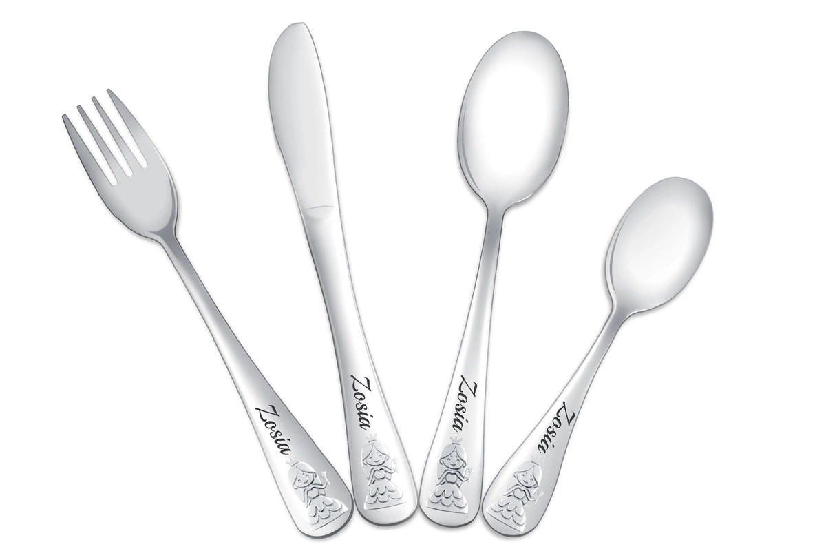- Eleganckie sztućce dla dziewczynki w motywie księżniczki. Antyalergiczne, bezpieczne dla dziecka, doskonałe na prezent z okazji Chrztu lub Urodzin.