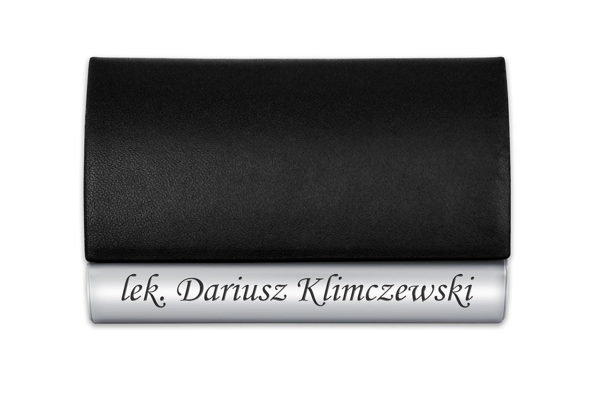 - Elegancki wizytownik z wysokiej jakości skóry i stali. Solidna konstrukcja, magnetyczne zamknięcie. Idealny prezent dla biznesmena lub szefa. Personalizowany grawer GRATIS.